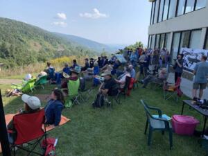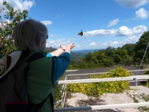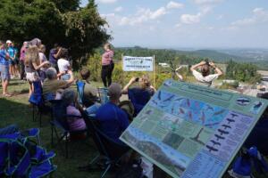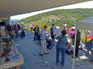 Weather permitting, we hold an annual Open House event called “WHERE THE RAPTORS SOAR! – A DAY AT THE HAWK WATCH“. We usually hold our event on the third Saturday of September, and our 8th annual Open House was on Sept 18, 2021. We usually get lots of visitors that enjoy refreshments and plenty of activities and exhibits including: Wildlife Center of Virginia raptor program, Augusta Bird Club, Piedmont Virginia Bird Club, Rockingham Bird Club, Blue Ridge Young Birders Club, raptor identification workshops, Monarch life egg to butterfly, Master Naturalists, American Kestrel exhibit, and more. Here are a few photos from our Open Houses.